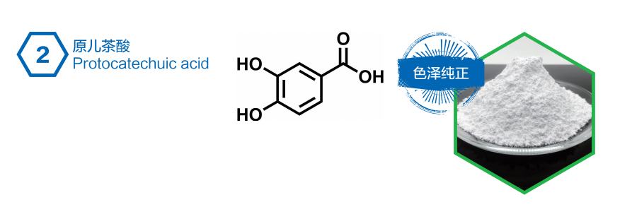 原儿茶酸是天然存在于许多蔬菜和果实中的一种酚酸类物质,特别是老鹳草、丹参等中药材中,也是复方丹参注射液、冠心宁注射液等复方制剂的有效成分。
