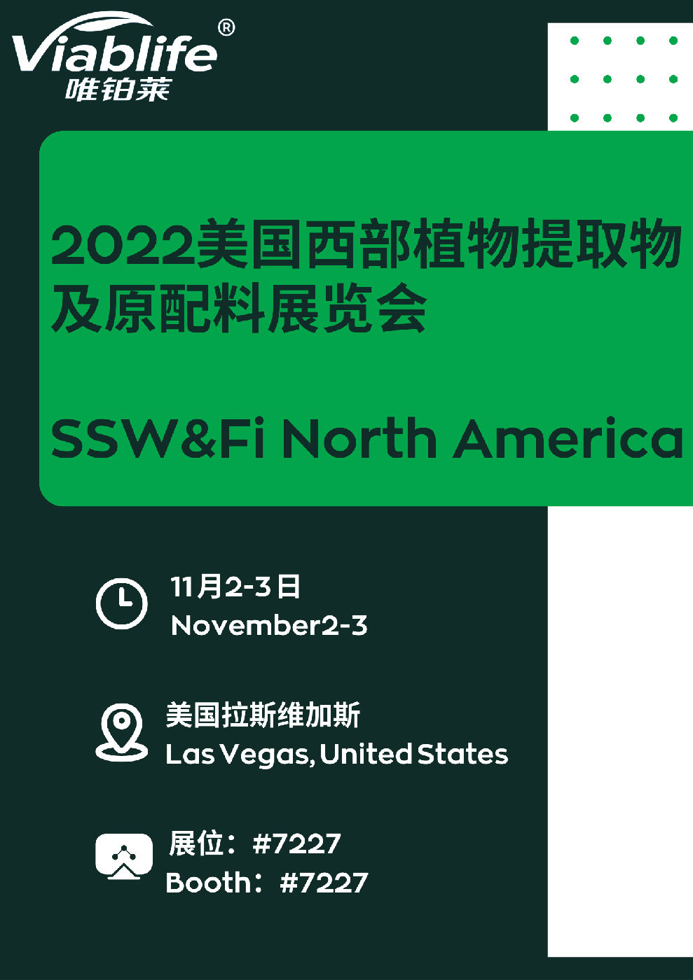 11月2-3日,2022美国西部植物提取物及原配料展览会(SSW&Fi North America)将在美国拉斯维加斯盛大举行。
