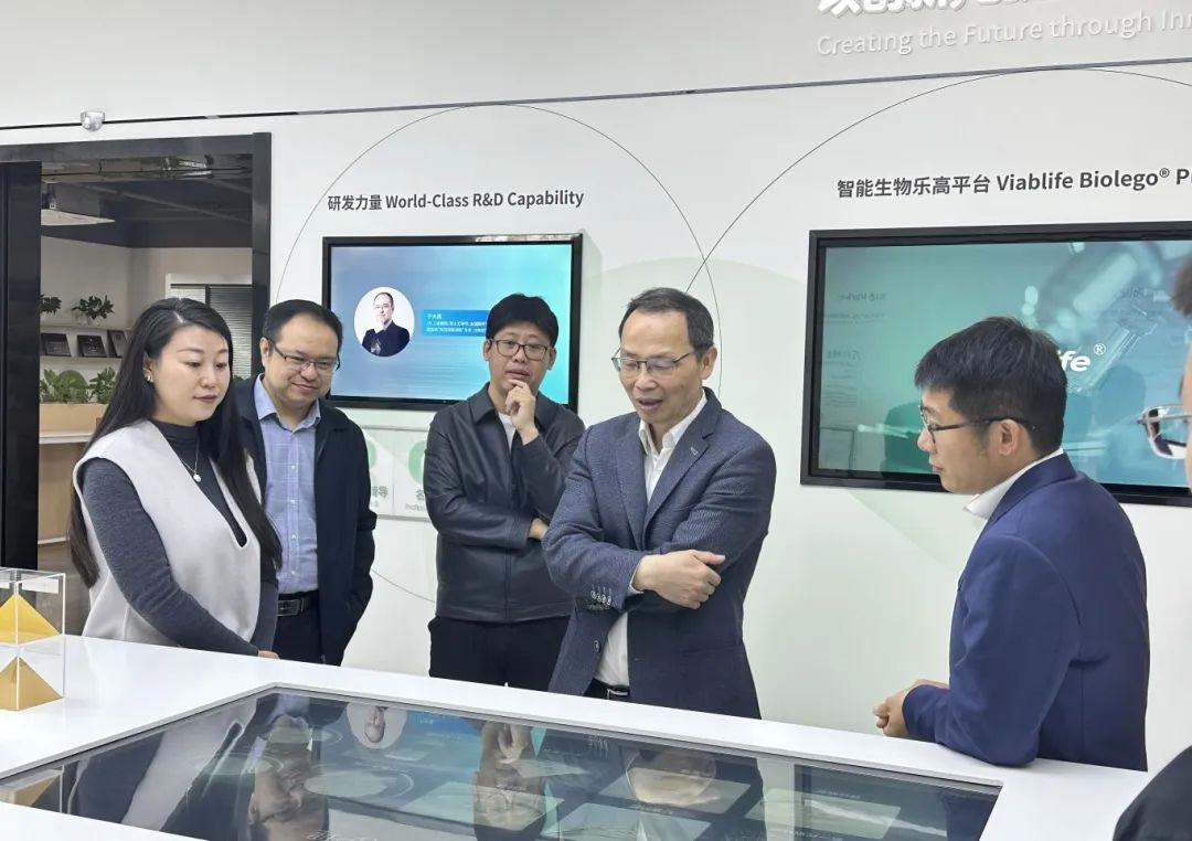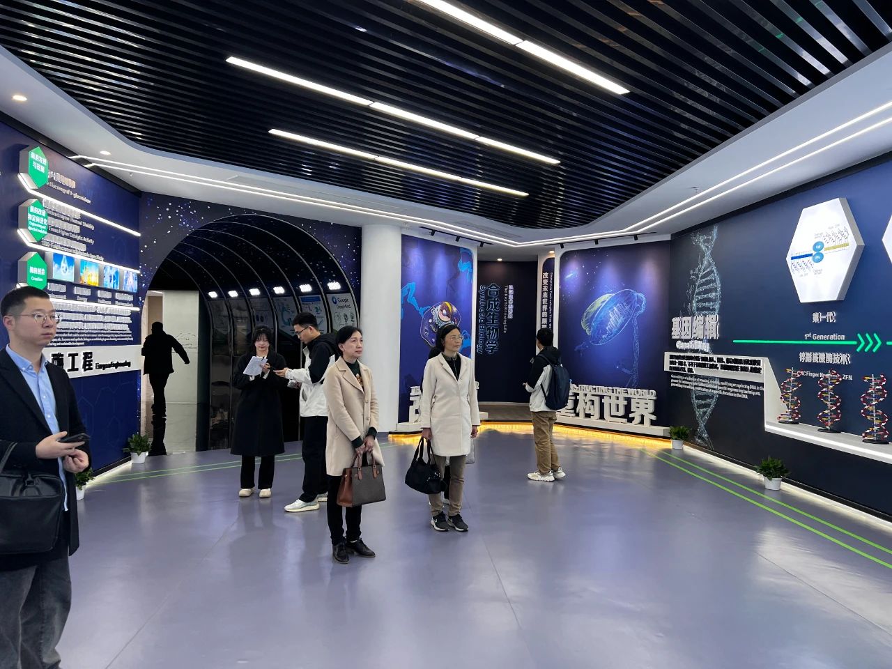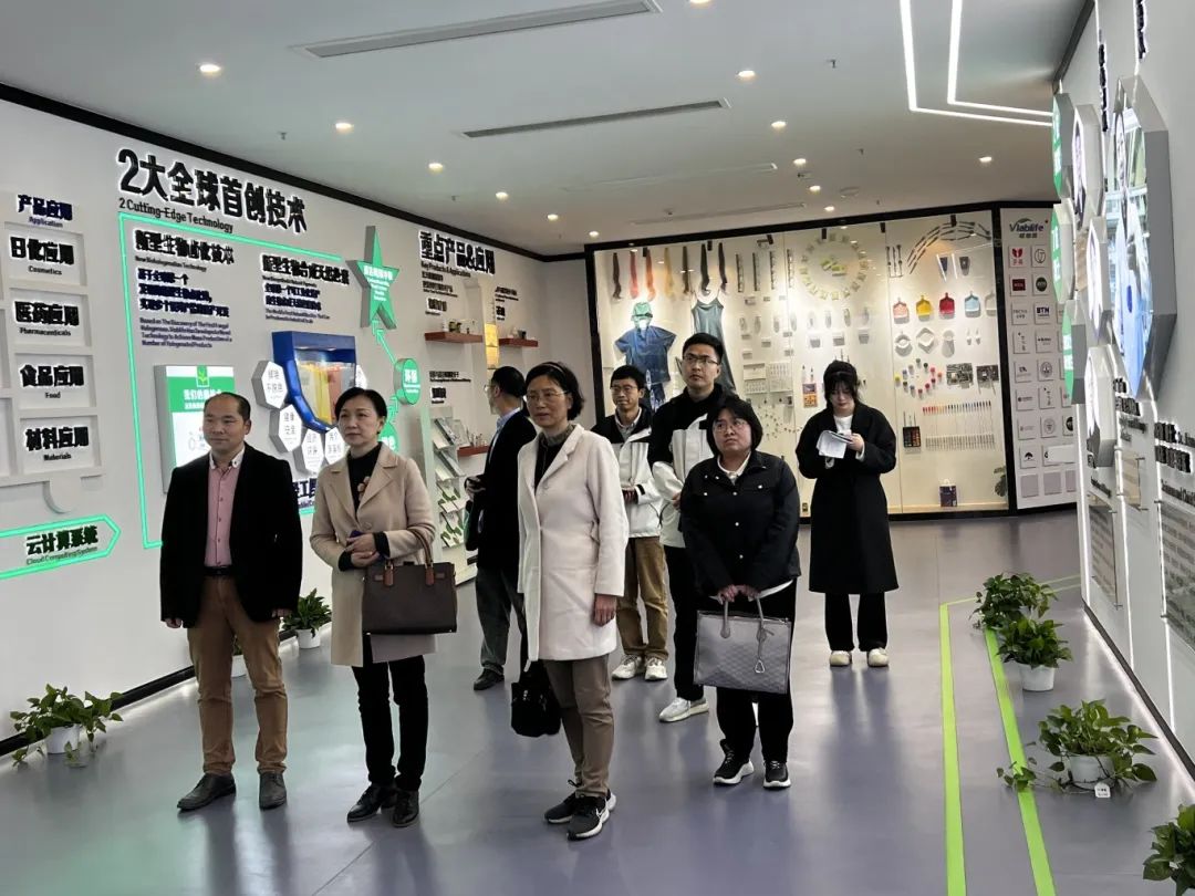 k1体育官网生物副总于大禹,杭州市南昌商会会长张建平等领导陪同邹璐潞主席一行先后参观了k1体育官网生物的研发中心、