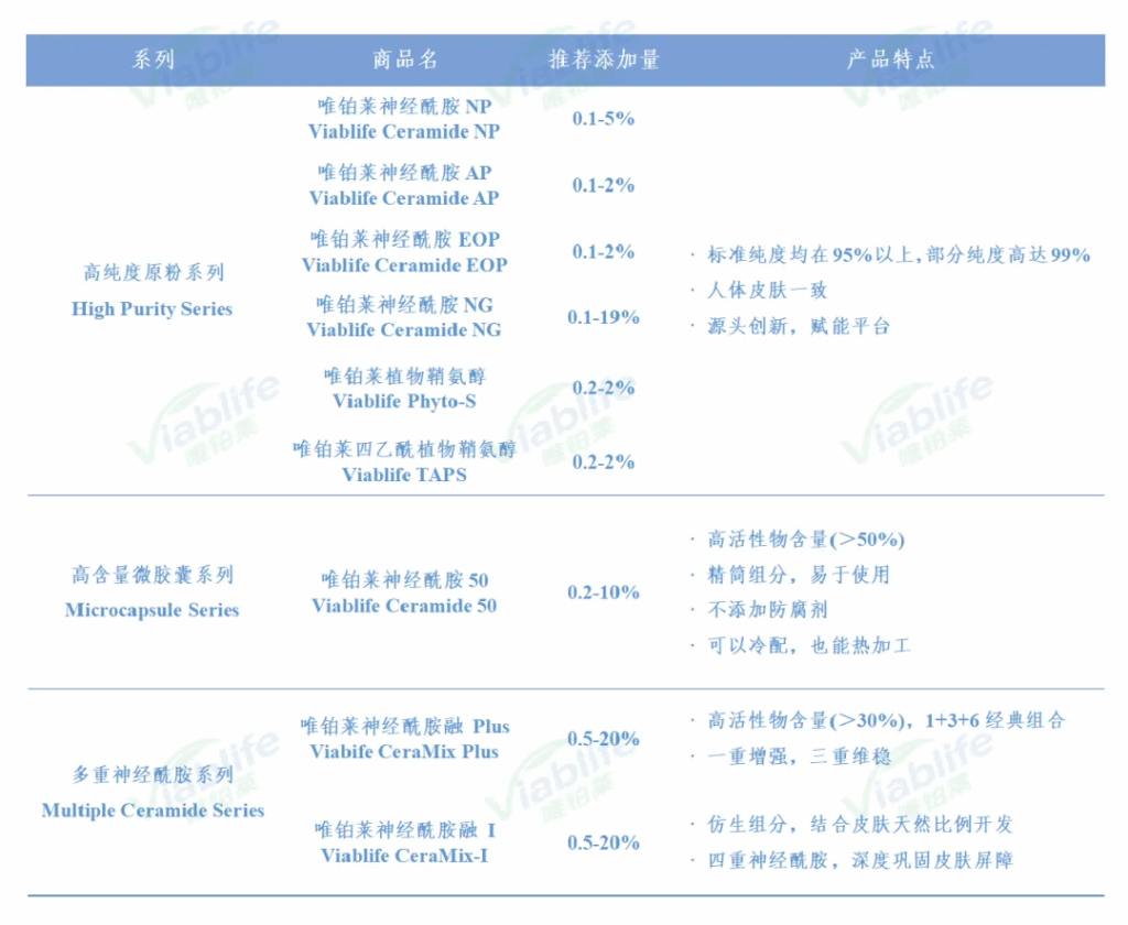 添加有2% Viablife Ceramide NP,结合非离子乳化剂实现了独特仿生液晶排列,产品 整体亮中带哑,更能带来持久滋润、长效维护。