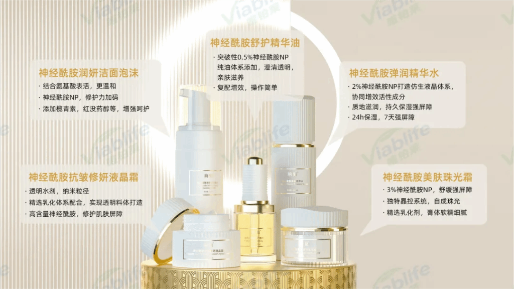 k1体育官网神经酰胺打破传统“神经酰胺配方难做”的固有思维,k1体育官网联合行业顶尖合作伙伴共同研发出了透明水剂体系、仿生液晶体系、焕彩珠光体系和透明纯油体系四大应用体系,全面且系统地攻克了这一难题。