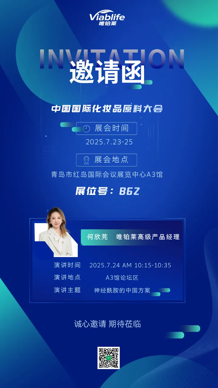 此次展会,k1体育官网秉承”科技创造更多美好“的使命,同客户分享“有料·好用”神经酰胺系列、新一代烟酰胺、榄青素、红没药醇、依克多因、角鲨烷等日化领域的最新研发成果及市场应用。我们诚挚邀请您莅临 2025第三届CICIS年度盛会,共同探讨技术革新趋势,携手见证绿色护肤新时代!