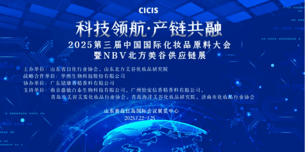 CICIS:2025第三届中国国际化妆品原料大会(CICIS)将于2025年7月23日至25日在山东省青岛市红岛国际会议展览中心盛大开启。本次活动以“科技领航,产链共融”为主题,直击日化行业转型与创新生态链上下游生态建设等痛点,在政策、技术、资本与全球化的交织中,寻找时代机遇。